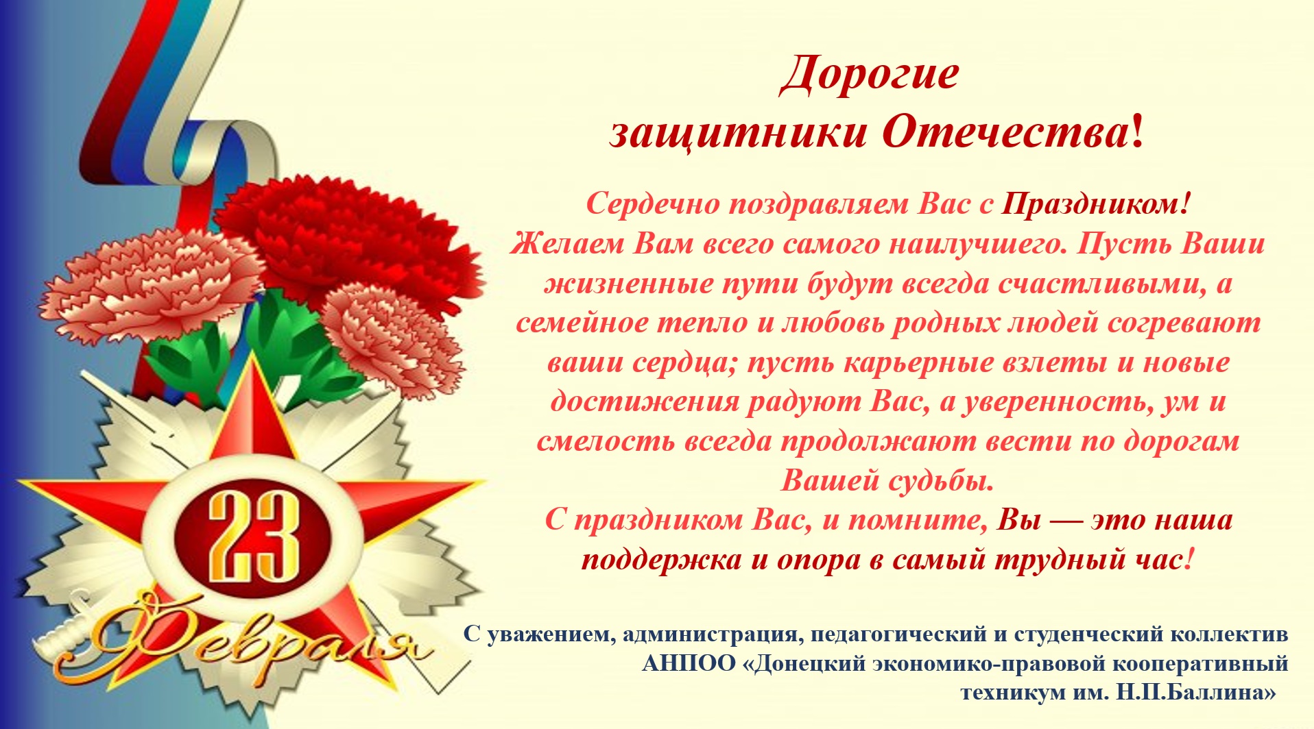 С уважением, администрация, педагогический и студенческий коллектив АНПОО «Донецкий экономико-правовой кооперативный техникум им. Н.П.Баллина»